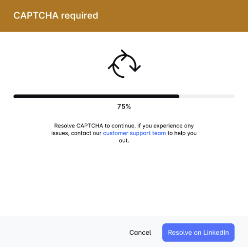 Encountering a CAPTCHA while setting up LinkedIn? 🧩 Simply click "Try by yourself," solve the puzzle, and enter the PIN to complete setup. We’re dedicated to making your LeadGenHub experience seamless. Enjoy! 🚀