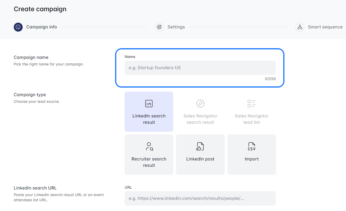 Launching a new campaign using steps from an existing one is simple! Duplicate your current campaign, add a unique name, and import leads via LinkedIn URL, CSV, or Sales Navigator Search. Be sure to update lead settings if needed. Enjoy creating campaigns! 🚀