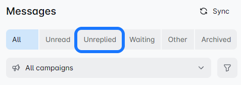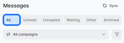 Once you connect your LinkedIn profile to the LeadGenHub, this filter shows your non-campaign-based messages. ❗ Messages sent before connecting your account won't appear here.