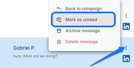 This is the default view of the inbox, where you can see messages from all the campaigns you’ve run on the LeadGenHub. You’ll also get a glance at messages from all three inboxes that the Smart Inbox merges: LinkedIn, Sales Navigator, and Email 📧.