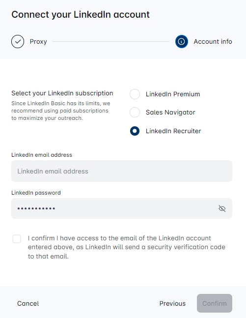 Connect your LinkedIn Recruiter account to LeadGenHub in just a few steps! New users can select 'Recruiter' during onboarding while existing users can switch via 'Settings.' Remember, switching requires a LinkedIn re-login for security. Once set, start creating Recruiter campaigns to supercharge your outreach. Happy networking! 🌟